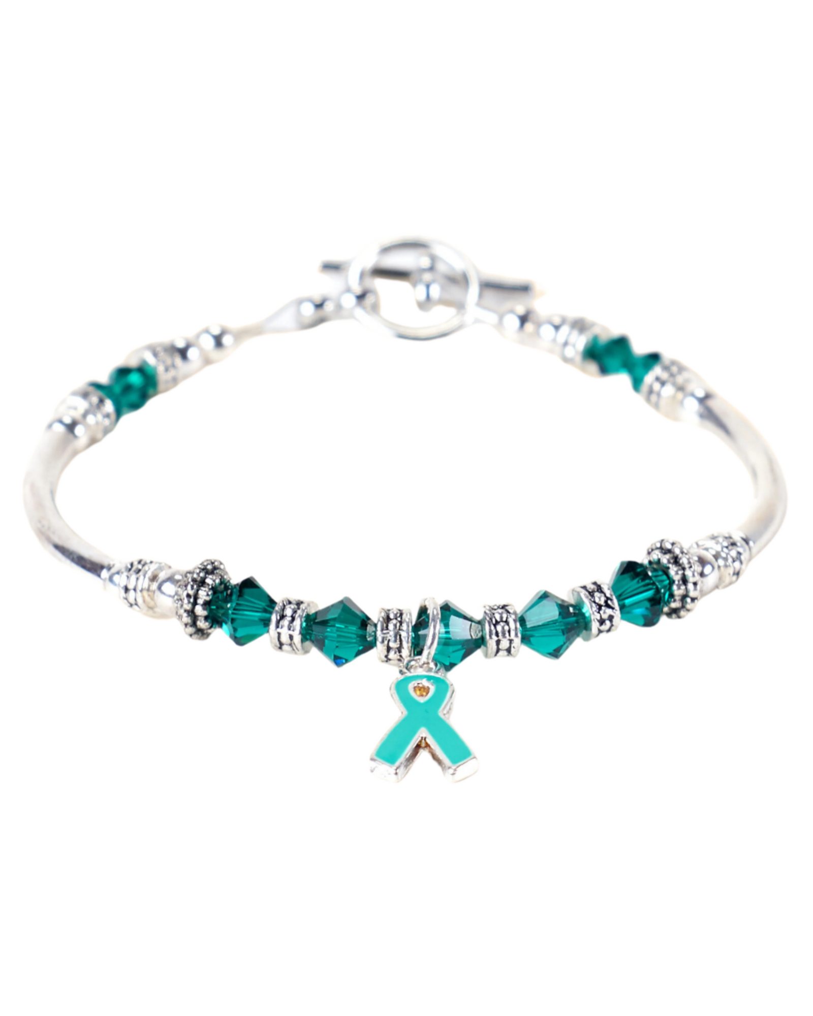 Teal Awareness Ribbon Bracelet Beaded $ 20.00 USD