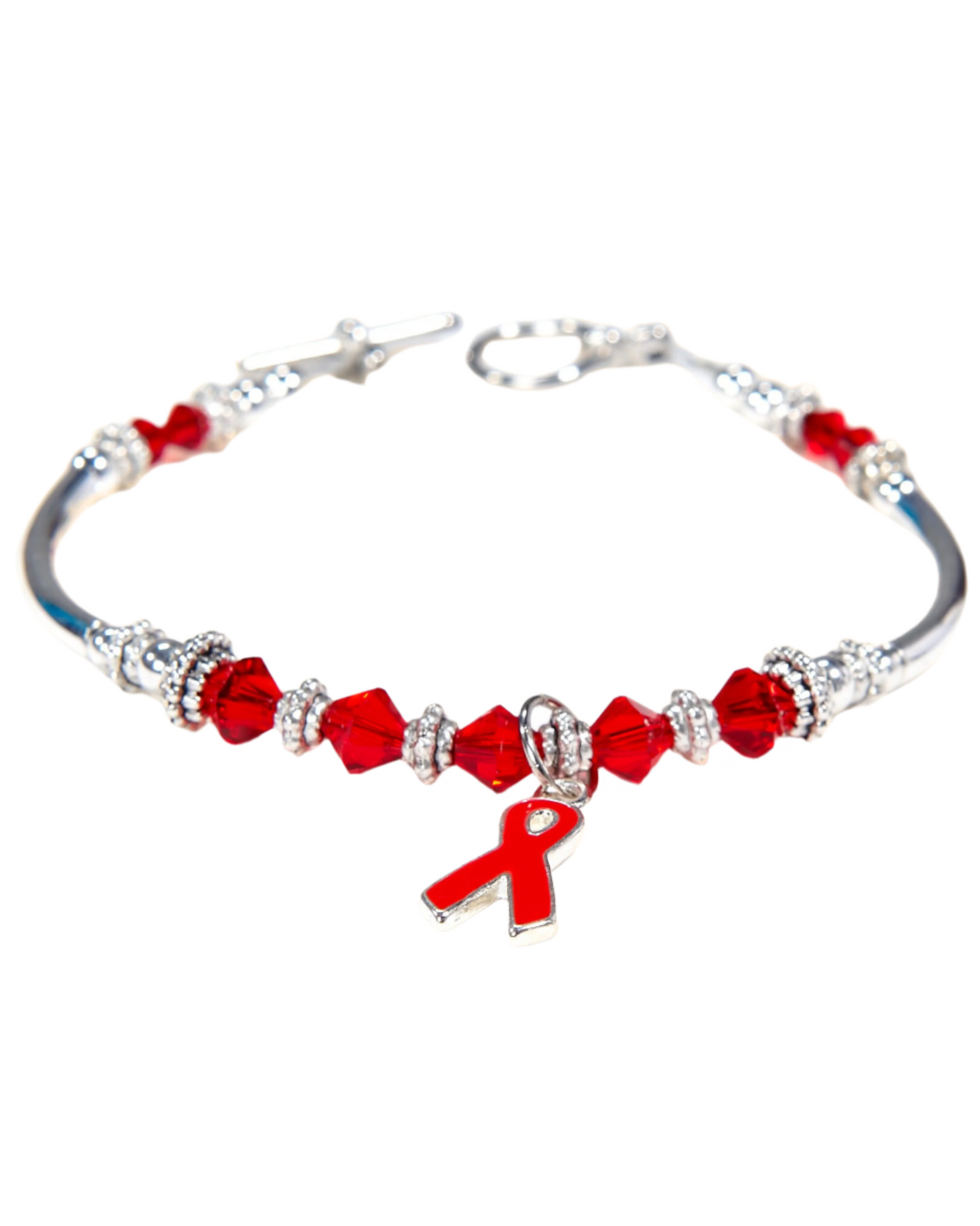 Red Awareness Ribbon Bracelet Beaded $ 20.00 USD