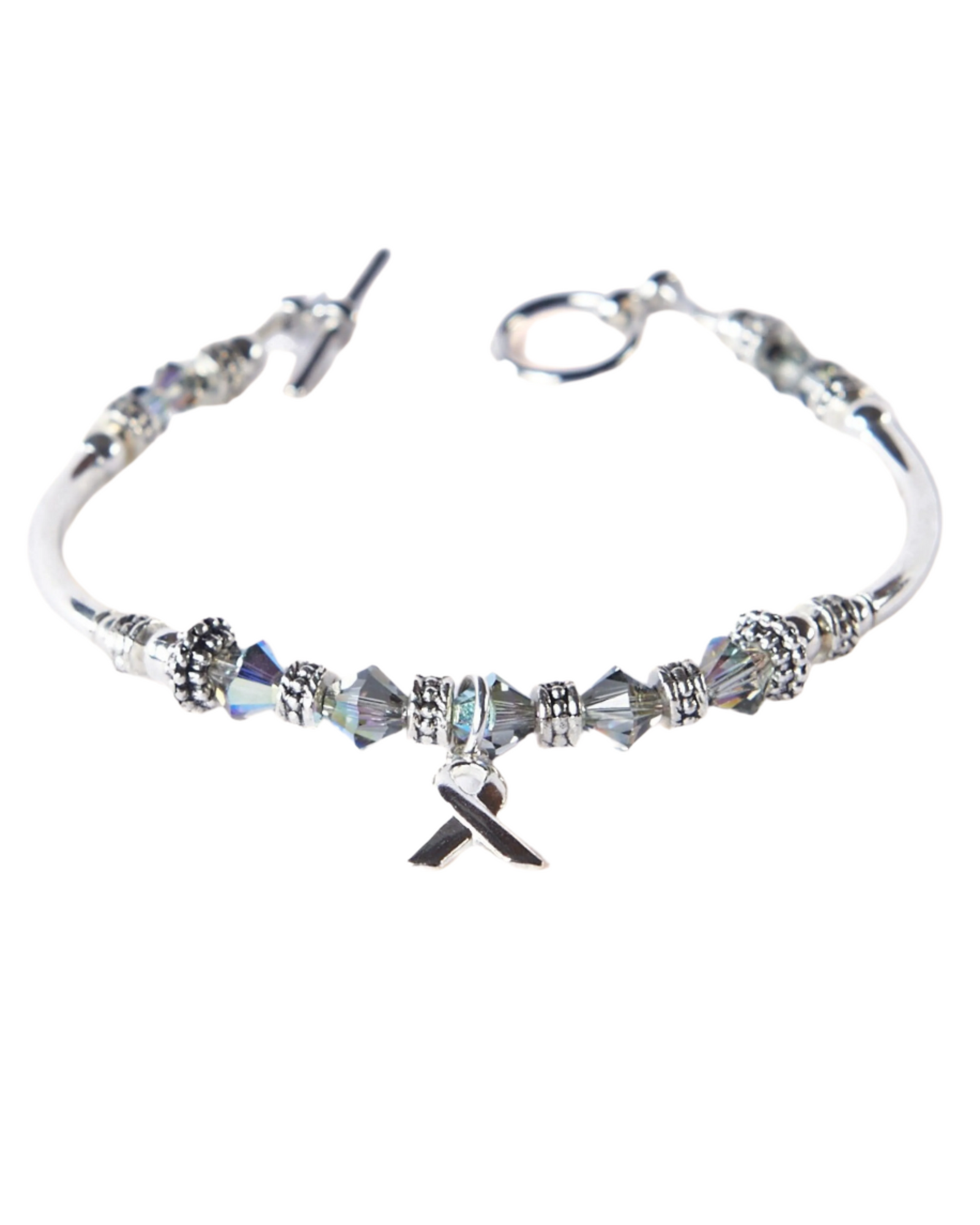 Silver Awareness Ribbon Bracelet Beaded $ 20.00 USD